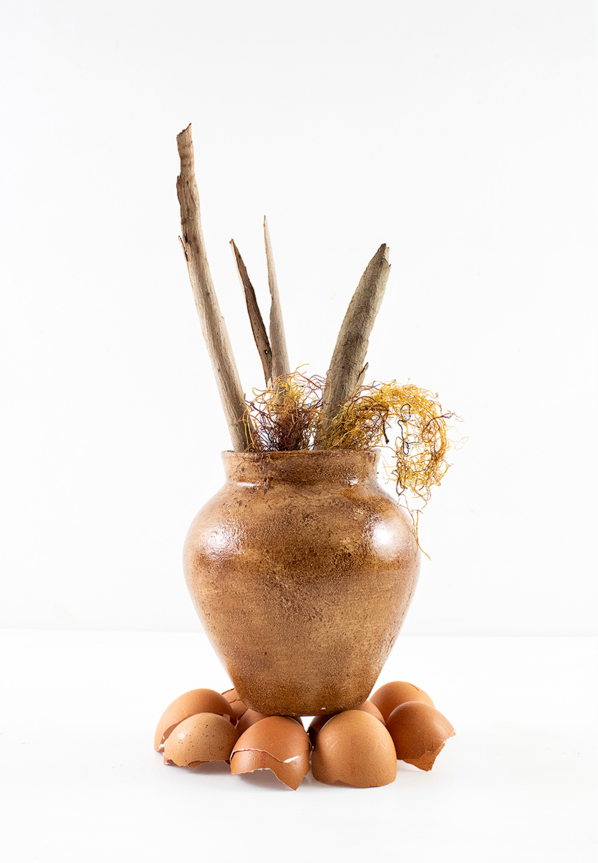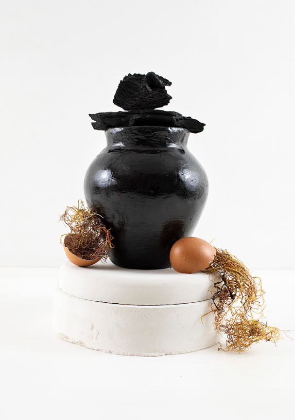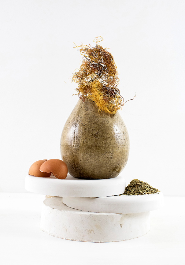 Fazendo uso de resíduos orgânicos pré-utilizados encontrados localmente, a designer cria uma série de vasos e potes sustentáveis que são inspirados na natureza e falam da desconexão das pessoas com ela.